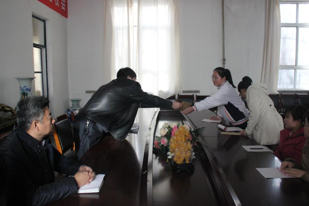 首先,舒永安书记就捐助活动做了简要介绍,受助学生是由学生推荐,班主任审查,并由学院学生工作领导小组最后确定。接下来,高楼军院长介绍了捐资校友的情况,两名资助人均为我院化工专业86级校友,他们分别是罗万明,现任延长石油炼化公司总经理;刘宏伟,现任延长石油炼化公司总工程师。本着饮水思源,回馈母校的思想,他们以今天之力,资助了我院化工专业王雅卿等四名家庭贫困、品学兼优的学子,帮助他们顺利完成学业。刘雨录老师讲到,学院时刻关心家庭困难的学子,努力为学生争取更多的资助。对受助学生也给予了厚望,希望他们可以做一个对社会有用的人,做一个有能力、有担当,学会感恩的人。最后教师代表柴红梅讲了话,希望我院受助学生可以不负学长的殷切希望,心存感恩,努力学习,勇于成才,回报母校和社会。受助学生先后做了表态发言。