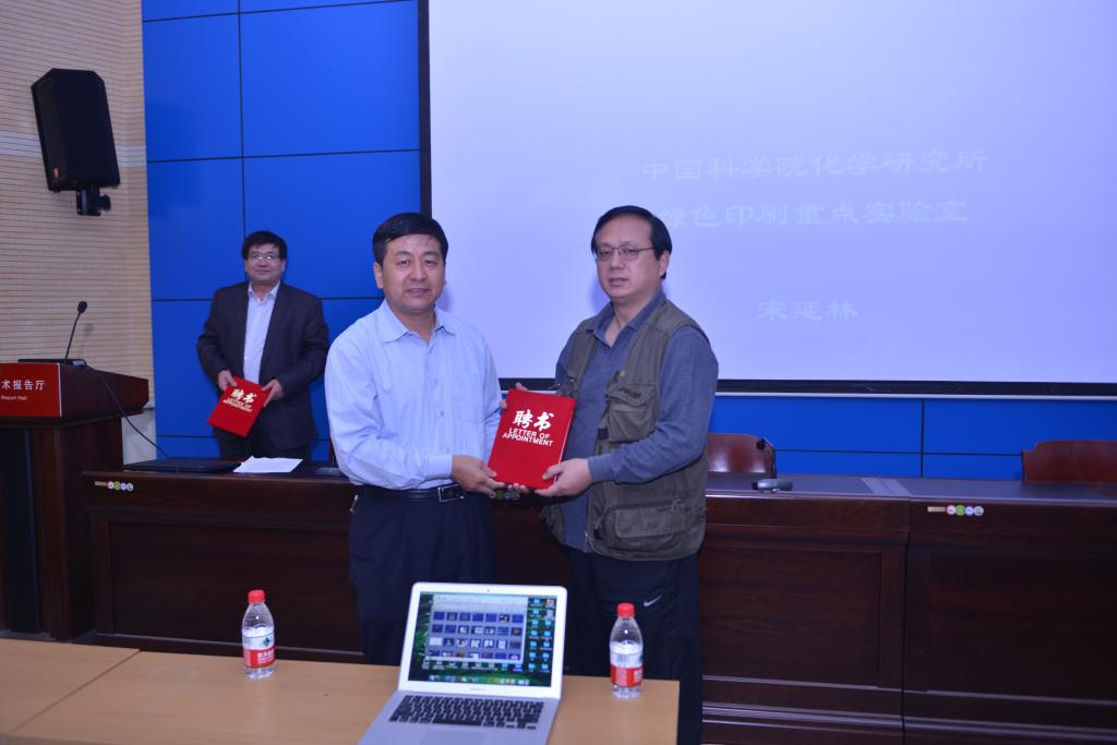 江雷院士主要从向自然学习,以“荷叶为什么出 ‘淤泥而不染’” “仙人掌为什么能够在沙漠中生存” “蜘蛛网集水”等为例,以诙谐幽默又浅显易懂的方式介绍了生物体表面的超疏水性机理、超疏水性界面材料的仿生合成与制备、“纳米界面材料的二元协同效应”材料设计理念、仿生智能定向集水纳米纤维等方面的内容。江院士援引毛主席语录:“有所发现,有所发明,有所创造”来对比基础科学研究的三个境界。同时,他还指出做科学研究的指导思想就是“效法自然,无中生有”。宋延林研究员从毕昇的活字印刷、王选院士的汉字激光照排,到自己的研究团队开发的纳米材料绿色印刷制版技术,详细的介绍了纳米材料绿色制版原理、优点及其把纳米绿色印刷技术延伸到电子、建材、印染等行业,通过纳米材料的创新和应用。