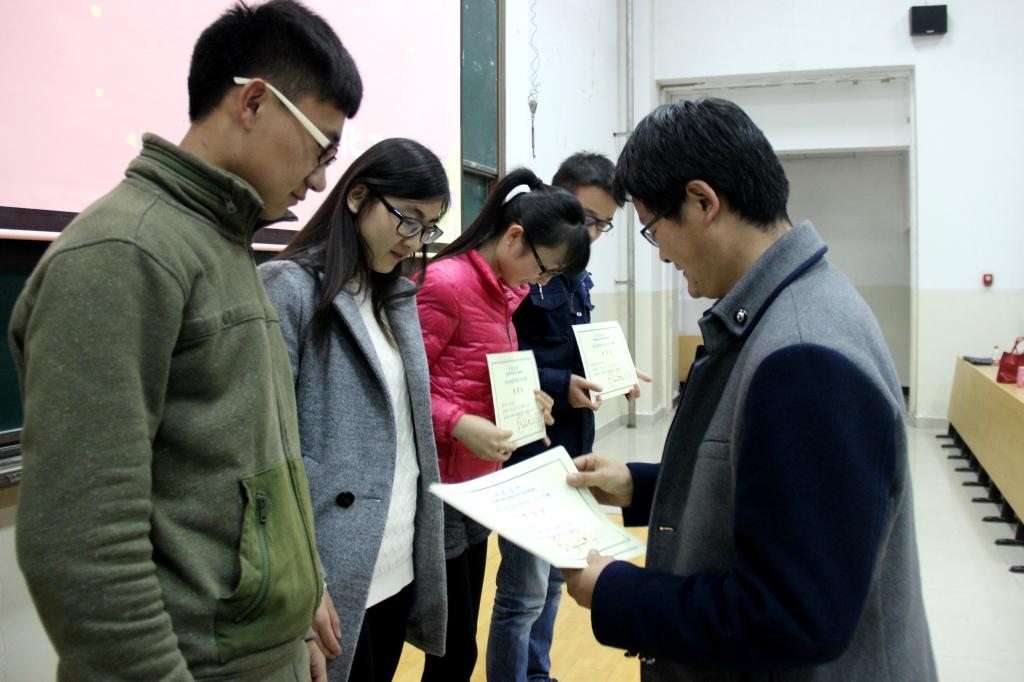 4名参赛学生代表和3名指导教师分别作了参赛经验交流,从报名、开始准备、搜集资料、遇到瓶颈、解决问题、比赛过程、所得体会等方面为大家作了分享,并鼓励在场学生积极报名参加比赛。