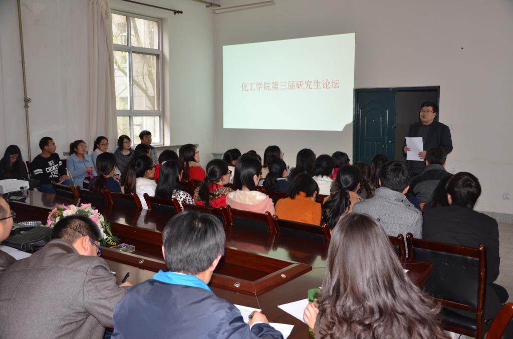 为了加强我院各专业研究生的学术交流,展示最新研究成果,探讨前沿学科问题,同时提高研究生的学术素养,营造浓厚的学术氛围,11月13日在学院会议室举办了“化学与化工学院第三届研究生论坛”,论坛由高楼军院长主持,化工学院研究生导师与研究生70多人参加了论坛。齐广才教授作了“问道读研,路在何方”的专题报告,齐老师就何谓读研、为什么要读研和如何读研提出几点建议,最后总结一句话“山有多高,你在哪里?想攀多高,路在何方?”;郭延红教授作了“现代煤化工产业发展回顾及展望”的学术报告。郭老师就现代煤化工产业的“十二五“回顾、“十三五”展望、国家产业政策、市场分析和存在问题四个方面进行了详细的分析,最后提出了几点建设性的意见。