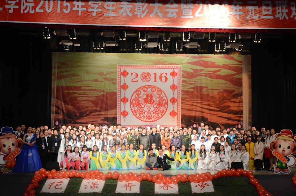 2015年12月20日晚,化工学院在大礼堂举办了以“花漾青春梦,共书化工情”为主题的2015年学生表彰大会暨2016年元旦文艺联欢晚会,院领导以及四十余名教职工及700余名学生观看了演出。晚会由马金婵、白雪、张嘉豪、野斌四位同学主持。