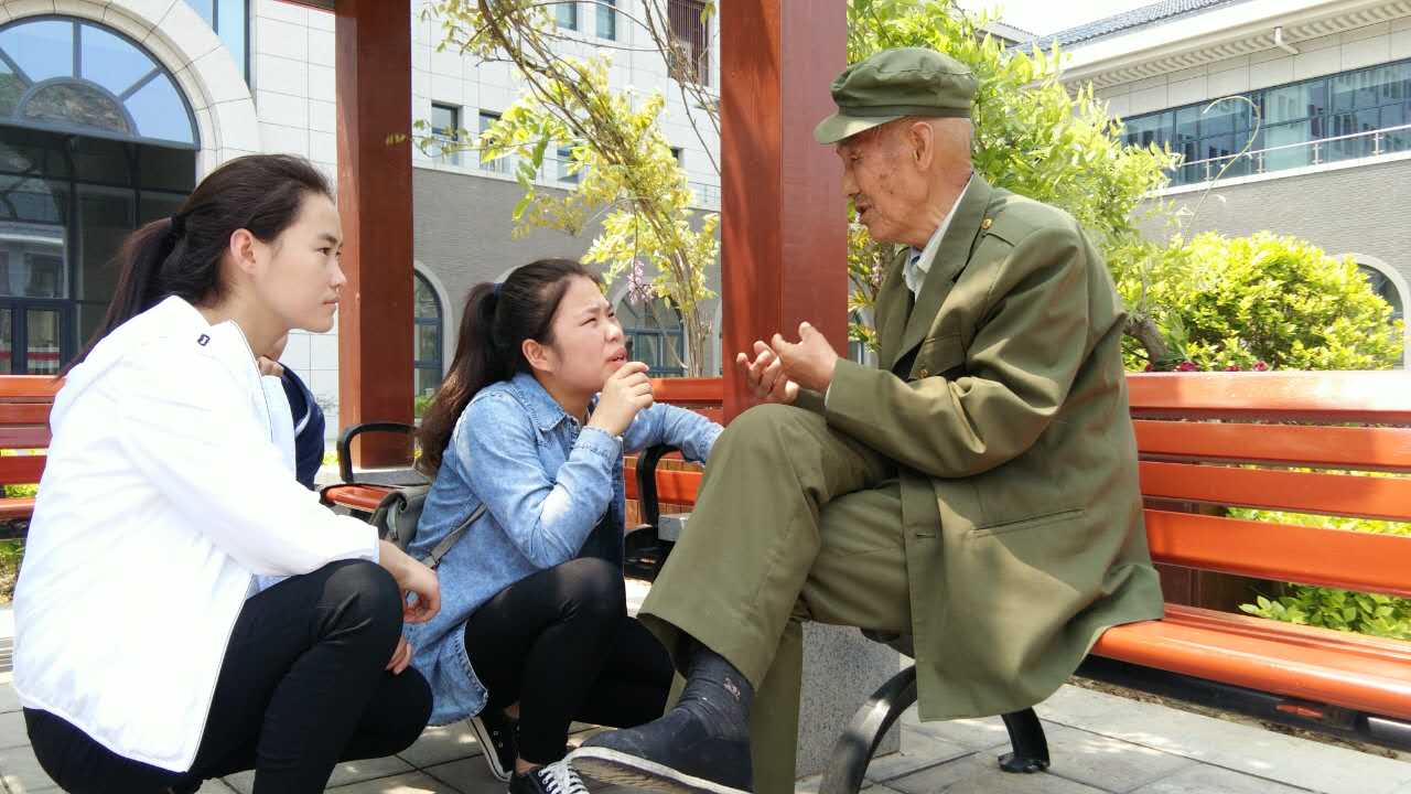 同学们在班长刘安宇的组织下进行集体合唱:黄河大合唱、强军战歌等。充满着青春阳光的歌声,不仅唱到了老人们的心里,也唱出了一个时代的记忆,多少革命烈士用自己的生命才换来了我们如今和平安宁的生活。老人们也一展歌喉,他们虽然年事已高,但那铿锵有力的歌声无不彰显革命精神。临走前,一位老人说,想让同学们把拍的照片洗出来送给他们一份,他们年纪越来越大,也许再过几年、十几年,他们这样的一群人就彻底消失了。他们被称作国家的宝物,是因为这几十年见证了国家的记忆和故事。他们想拍照,是想留下证明,当年,还有这样一群老兵,在这样的地方,有着这样不平凡的经历和记忆。这段话,令人伤感,更令人感慨!