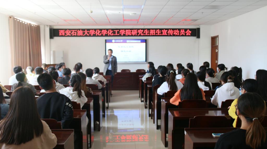 9月22日下午,西安石油大学化学化工学院黄风林教授、宋绍富教授一行在学院216会议召开2023年硕士研究生招生宣传动员会。张琰图院长、王潇副院长、毕业班班主任及2023届毕业生60余人参加了动员会,动员会由张琰图院长主持。
