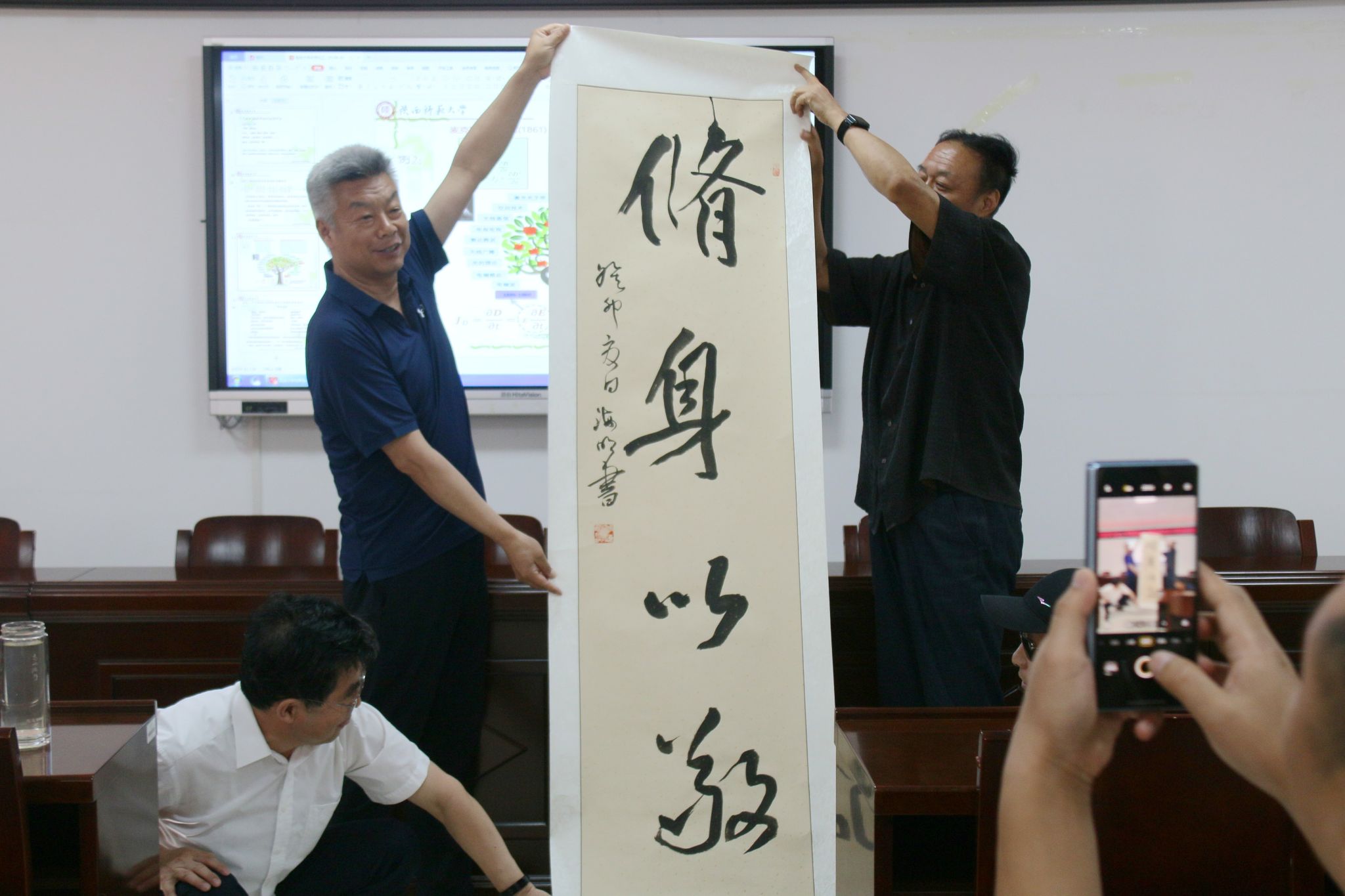 6月14日下午,化工学院在216会议室举行延安大学化工学院校友李海明先生捐赠书法作品仪式。学院班子成员和教师代表参加了捐赠仪式。