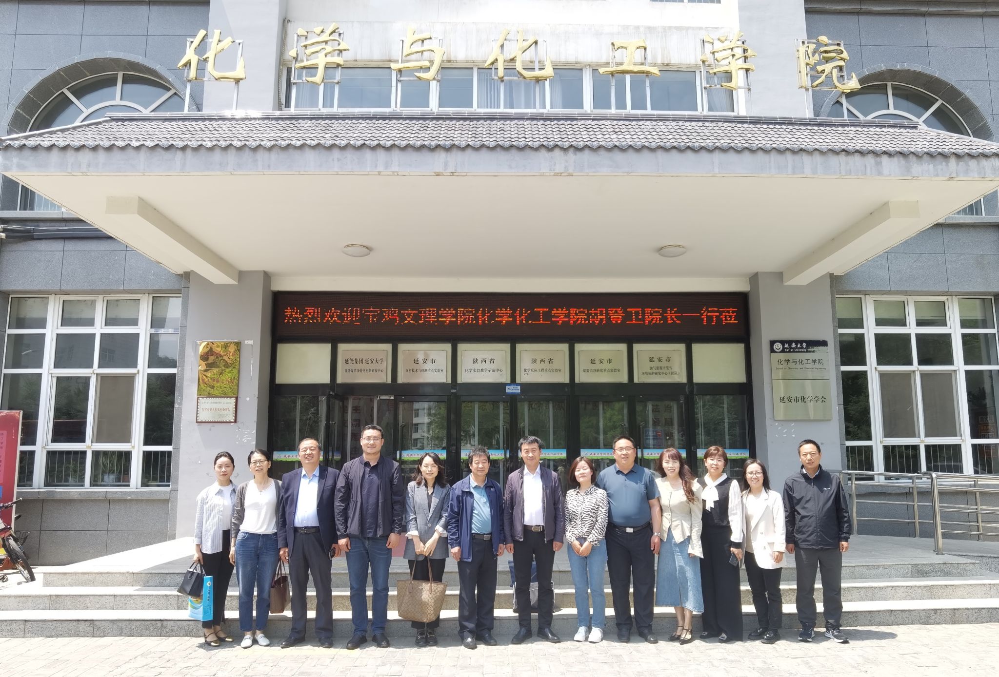 张琰图院长对胡登卫院长一行来院考察交流表示衷心欢迎。并简要介绍了延安大学和化学与化工学院的办学历史、发展现状、师资队伍建设、本科教学、学科建设、硕士生培养等方面情况;胡登卫院长从宝鸡文理学院和化学化工学院的办学历史和发展规划以及师资队伍、人才培养、学科建设、科学研究、专业建设等方面的情况做了详细介绍。随后双方围绕教育教学、地区基金、联合进行校企合作、师资队伍建设、就业升学、党的建设、学生工作等方面进行深入学习交流。并现场参观考察了学院的本科教学和科研实验室。