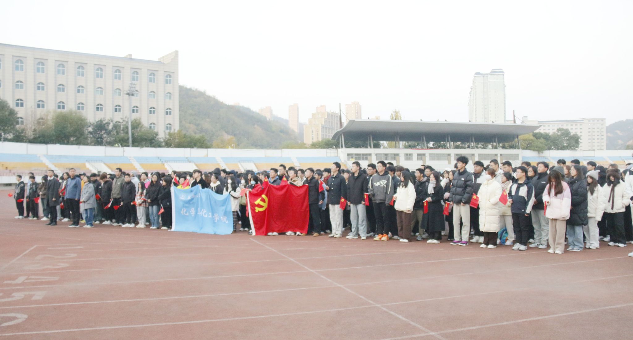 10月28日早晨,化学与化工学院在杨家岭校区田径场举行“学习时代楷模 争做新时代筑梦人”主题教育暨升国旗活动。学院党委副书记赵芝瑞,辅导员张哲豪、刘咪、苏清元,第65期入党积极分子及学生代表600余人参加了活动。