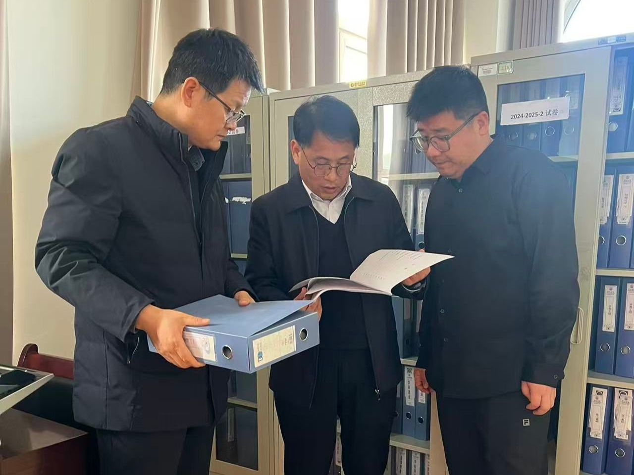 2025年12月2日下午,副校长吕磊与校督导团团长齐广才、教务处、实验室建设与管理处等到化学与化工学院对本科教育教学审核评估、化学师范专业认证进行考察与督导。检查组围绕学院教学及课程档案的规范化、本科教学实验室的管理进行了深入细致的实地检查。